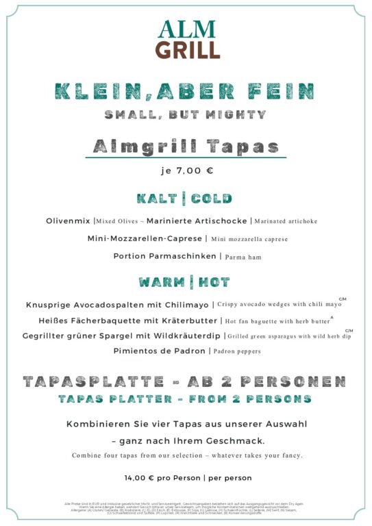 Almgrill Speisekarte – Regionale Zutaten treffen auf Grill- und Steakspezialitäten